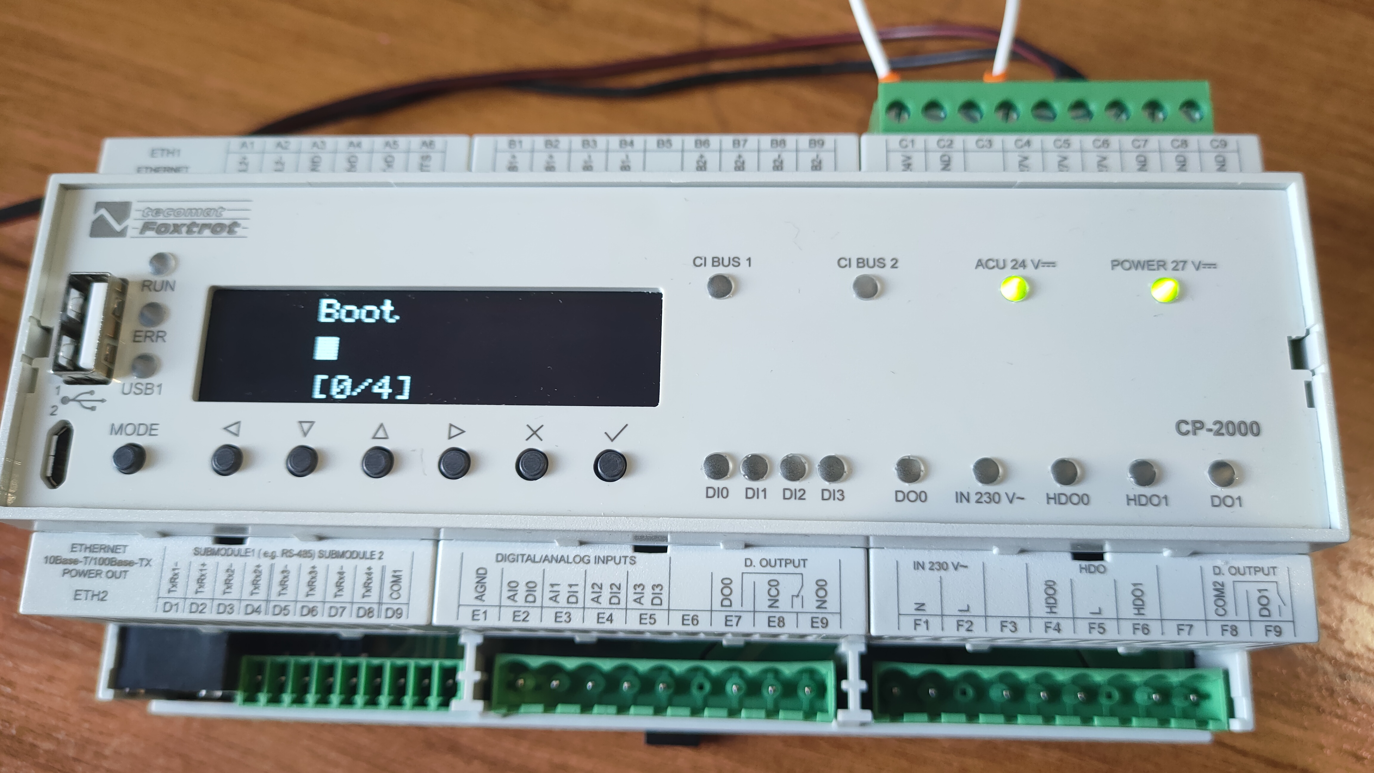 Po připojení napájencího napětí se na displeji PLC zobrazí "system starting", následuje "Boot [0/4]" a v tomto stavu již už zůstane. Napájení mám 24 V DC, vývod pro připojení externí baterie je propojený s napájením (LED "ACU 24 V=" bliká). K PLC se nelze připojit ani s ním nijak pracovat. Je možnost přehrát v tomto stavu FW?